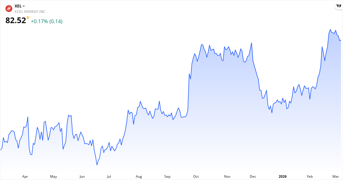 Xcel Energy aktiekurs – Kursutveckling 2026. Uppdaterad 08. Mar 2026.