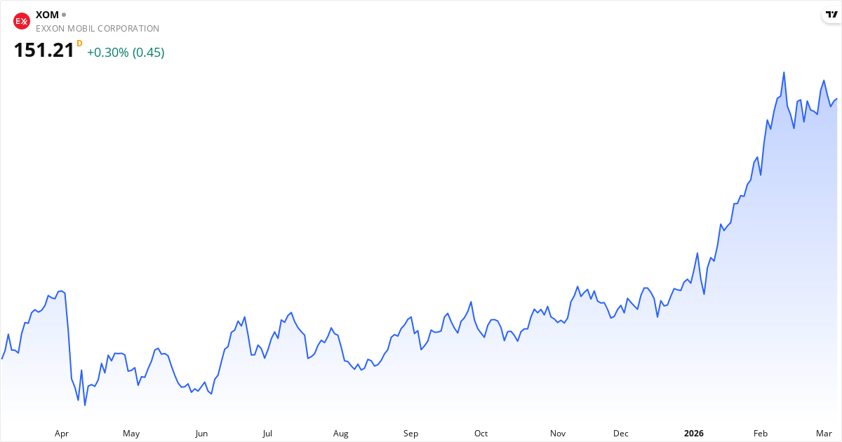 Exxon Mobil publicerar nästa rapport den 01. maj 2026. Aktien handlas för närvarande till 151.21 $. Med ett P/E-tal på 22.5 kommer marknaden hålla utkik efter om intjäningen lever upp till förväntningarna.