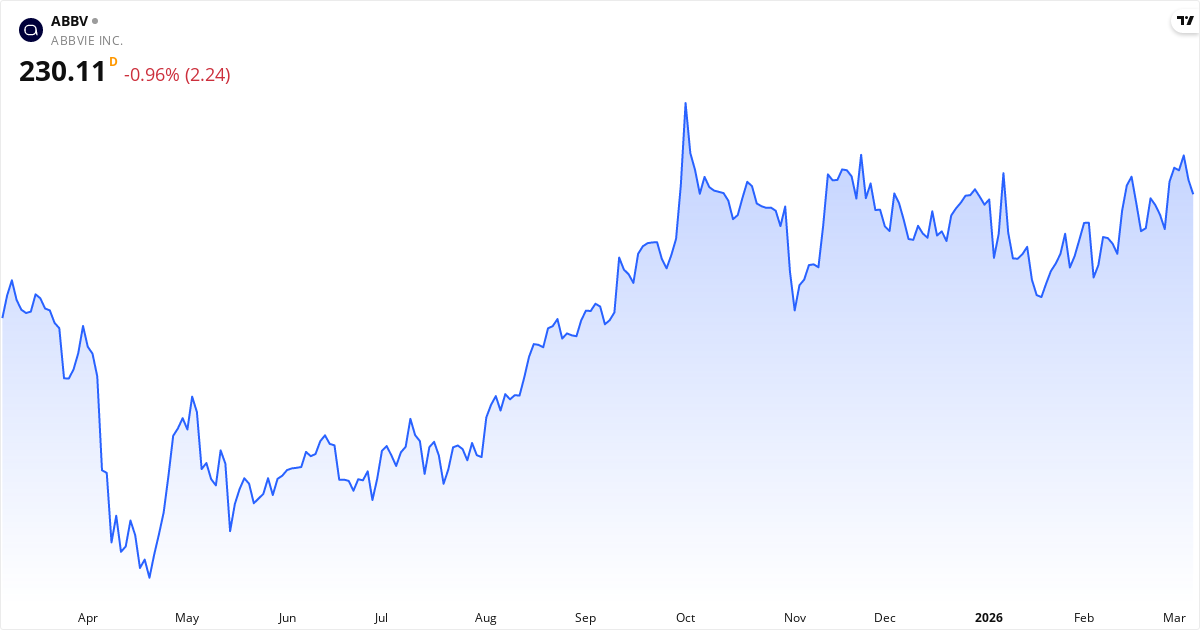 AbbVie publicerar nästa rapport den 23. april 2026. Aktien handlas för närvarande till 230.11 $. Med ett P/E-tal på 98.0 kommer marknaden hålla utkik efter om intjäningen lever upp till förväntningarna.