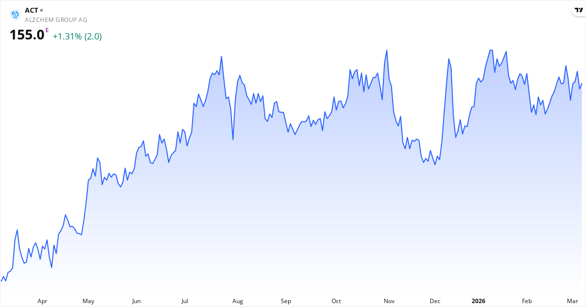 Golden Cross: 50-dagars genomsnittet (154.82) ligger över 200-dagars (145.85), vilket är en klassisk bullish signal for AlzChem Group AG.