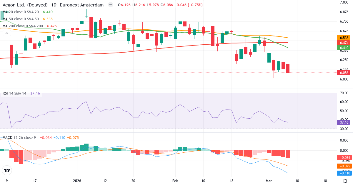 Aegon's nästa rapport publiceras den 7. maj 2026. Detta rapport täcker första kvartalet (Q1) och avslutades den 31. marts 2026.Teknisk analys av Aegon 2026 – Signal: Sälj
