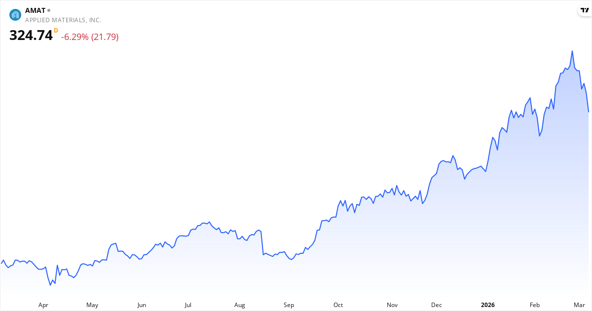 Applied Materials aktiekurs – Kursutveckling 2026. Uppdaterad 08. Mar 2026.