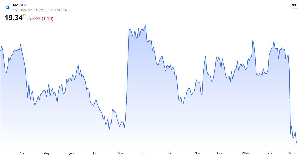 Amphastar Pharmaceuticals aktiekurs – Kursutveckling 2026. Uppdaterad 08. Mar 2026.
