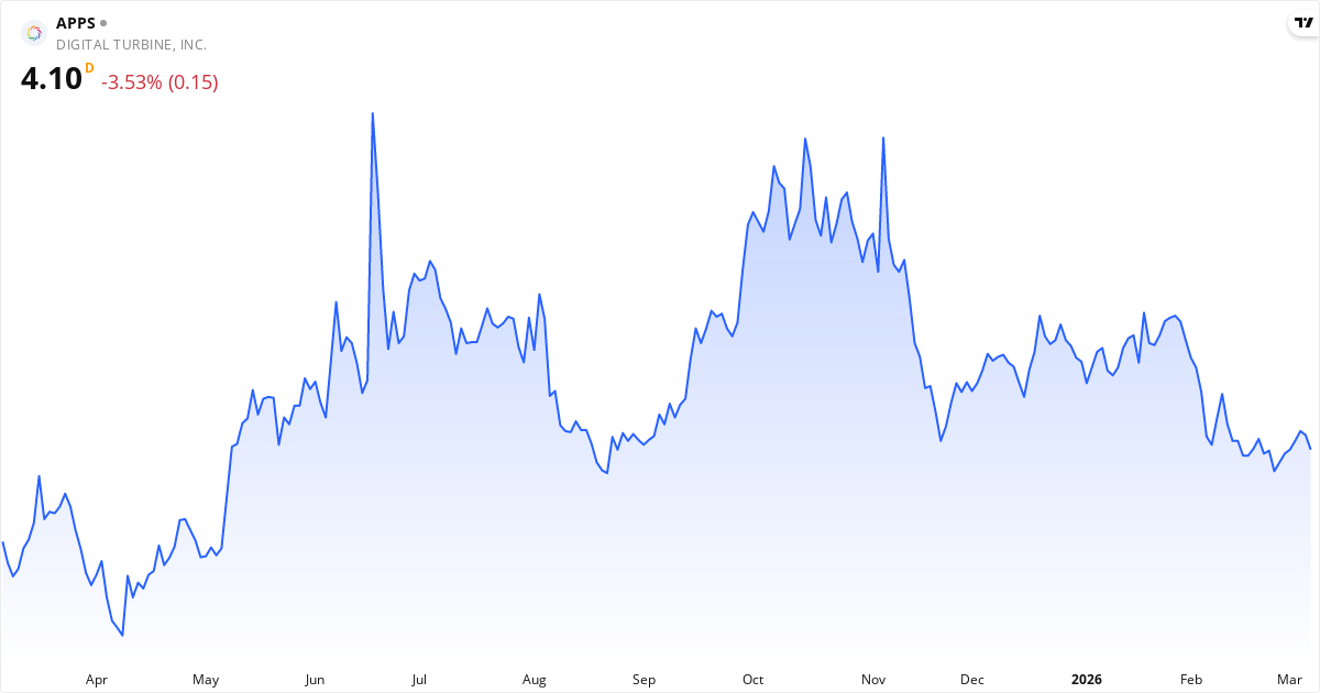 Digital Turbine aktiekurs – Kursutveckling 2026. Uppdaterad 08. Mar 2026.