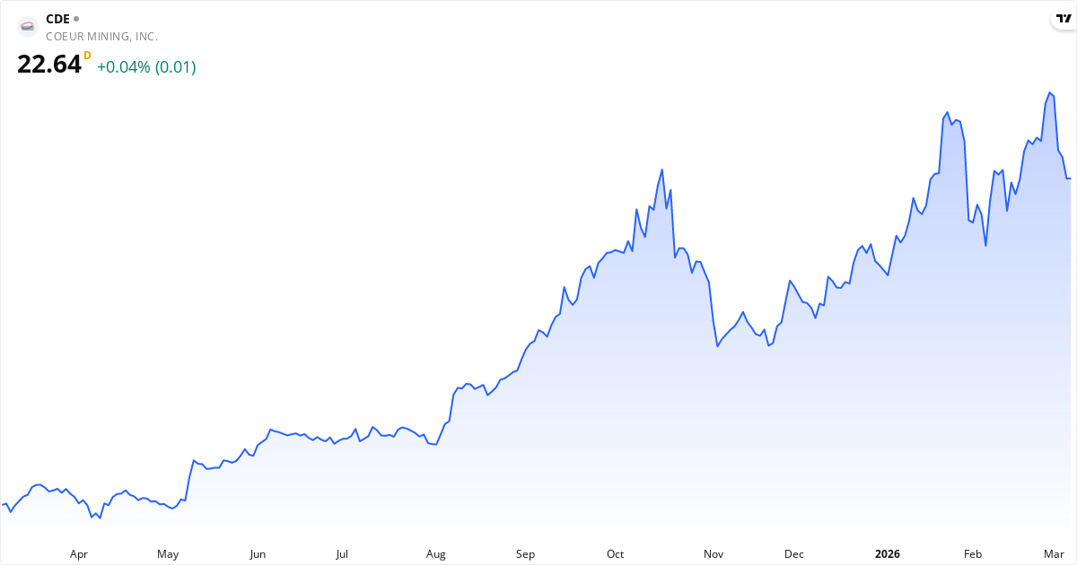 Coeur Mining aktiekurs – Kursutveckling 2026. Uppdaterad 08. Mar 2026.