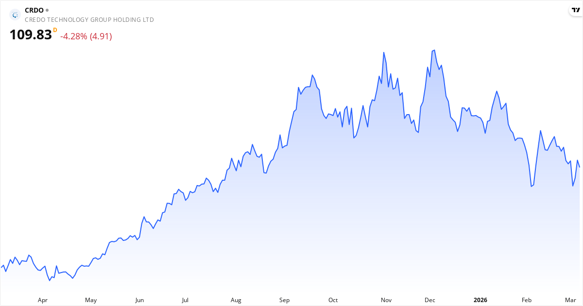 Credo Technology aktiekurs – Kursutveckling 2026. Uppdaterad 08. Mar 2026.