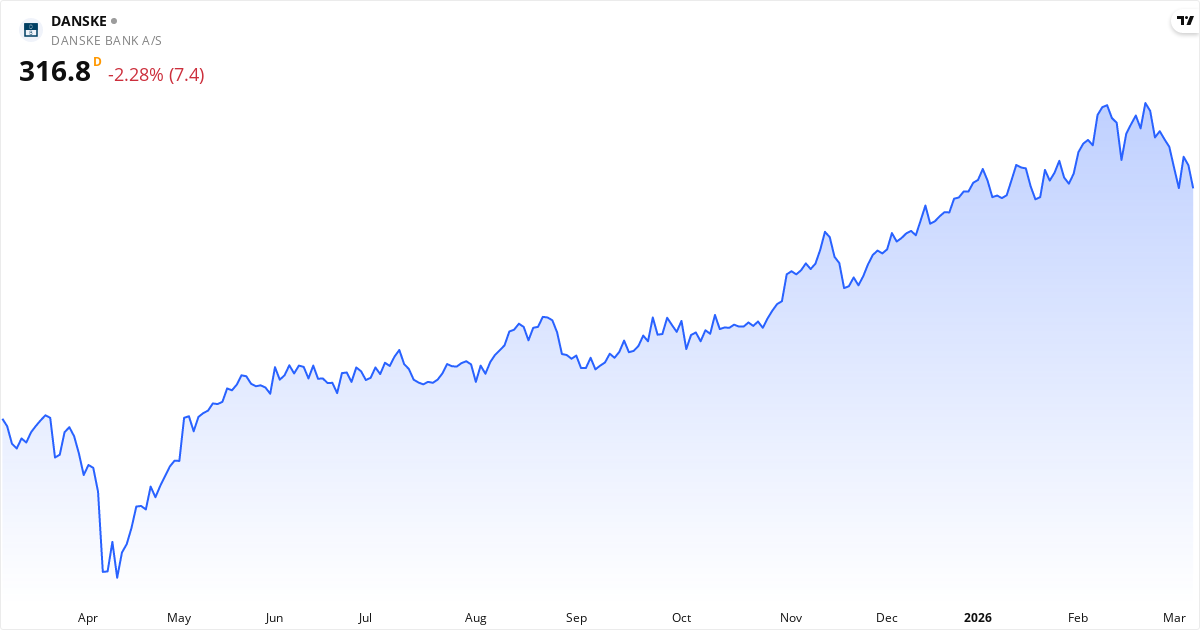 Danske Bank aktiekurs – Kursutveckling 2026. Uppdaterad 08. Mar 2026.