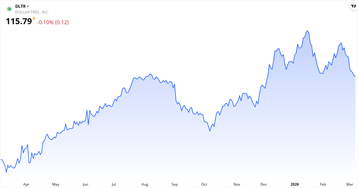 Dollar Tree aktiekurs – Kursutveckling 2026. Uppdaterad 08. Mar 2026.