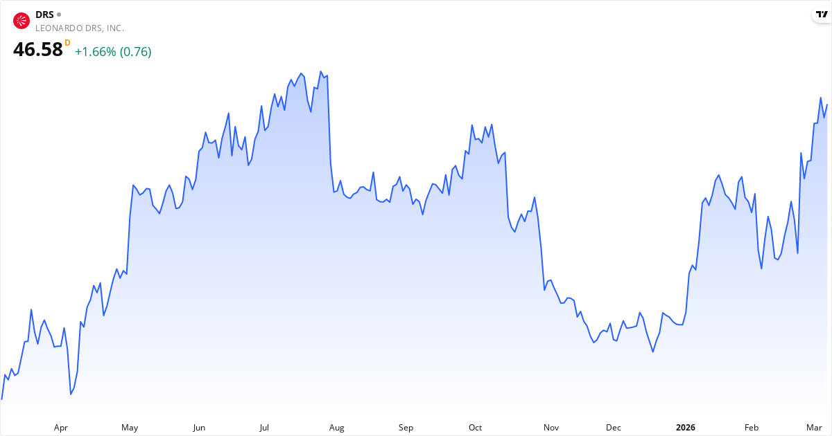 Leonardo DRS aktiekurs – Kursutveckling 2026. Uppdaterad 08. Mar 2026.