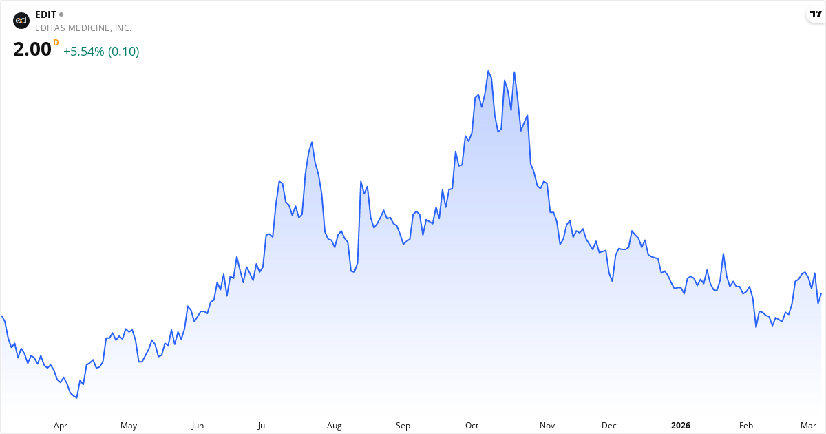 Editas Medicine aktiekurs – Kursutveckling 2026. Uppdaterad 08. Mar 2026.