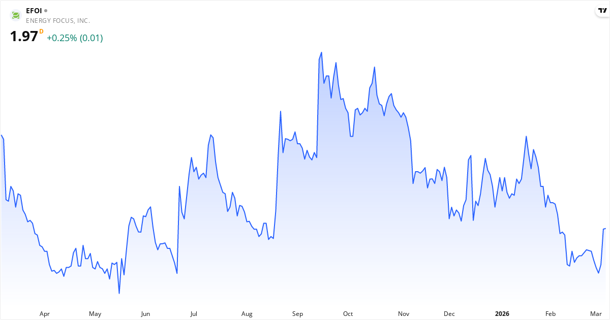 Energy Focus aktiekurs – Kursutveckling 2026. Uppdaterad 08. Mar 2026.