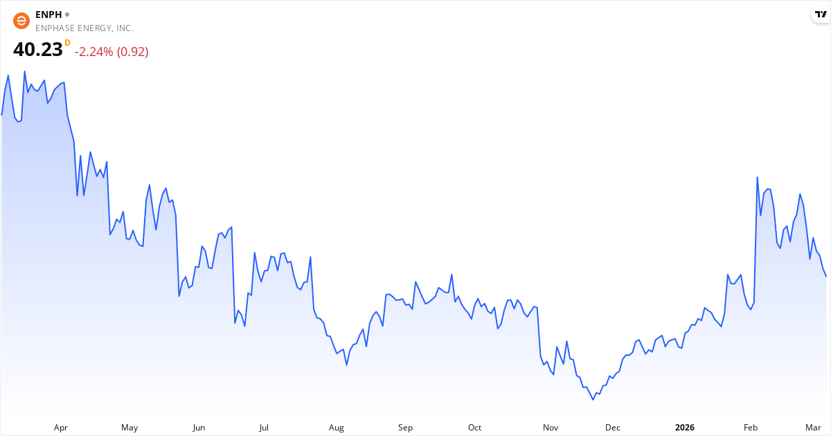 Enphase Energy publicerar nästa rapport den 28. april 2026. Aktien handlas för närvarande till 40.23 $. Med ett P/E-tal på 33.2 kommer marknaden hålla utkik efter om intjäningen lever upp till förväntningarna.