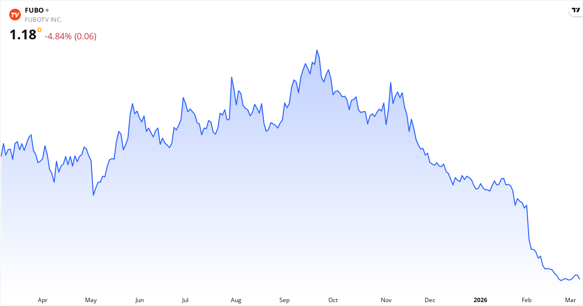 fuboTV aktiekurs – Kursutveckling 2026. Uppdaterad 08. Mar 2026.