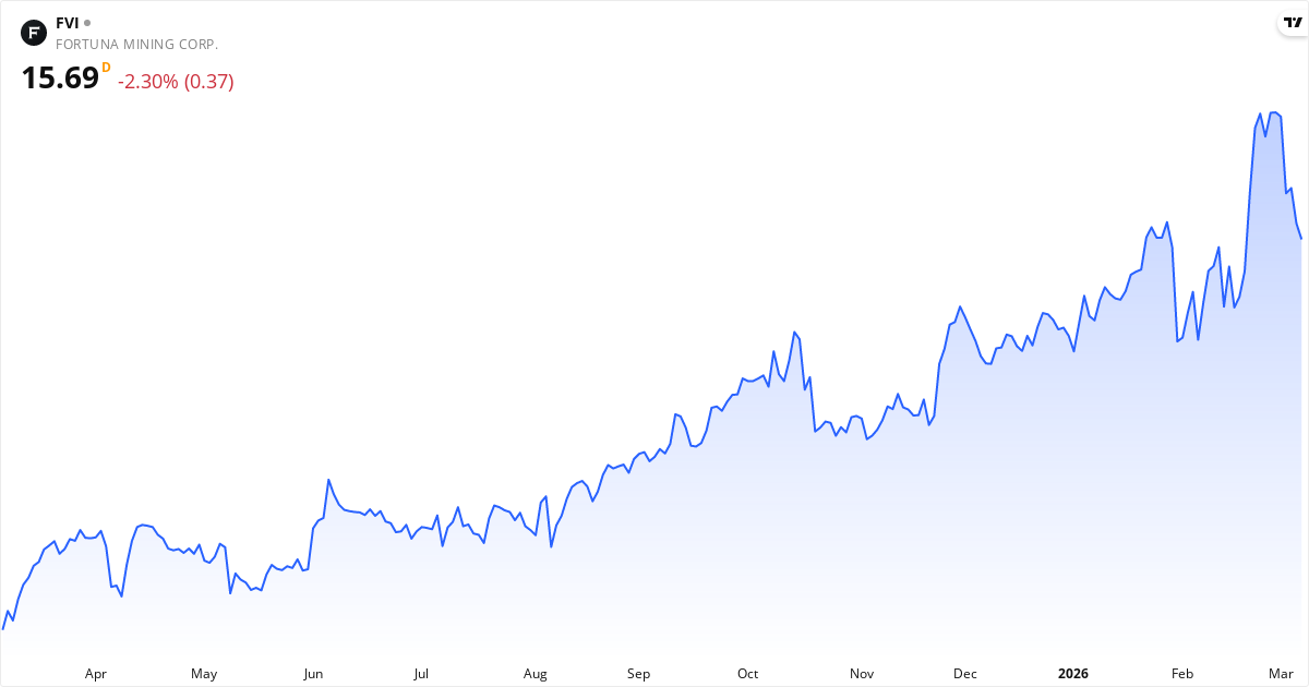 Fortuna Mining Corp. driver minedrift og relaterede aktiviteter inden for ædel- og basismetaller. De tjener penge ved at grave guld, sølv, bly og zink op af jorden. Fortuna Mining Corp. har gang i flere store miner, blandt andet Lindero og Yaramoko guldminerne, Séguéla guldminen og San Jose sølv-guld minen. De driver også Caylloma minen, der leverer sølv, bly og zink. Virksomheden blev stiftet helt tilbage i 1990 og har i dag aktiviteter i Argentina, Mexico, Peru og flere lande i Vestafrika. Fortuna Mining Corp. skiftede navn i juni 2024 fra det tidligere Fortuna Silver Mines Inc., men holder stadig fast i hovedkvarteret i Vancouver. Läs om företagetNyckeltal for Fortuna Silver Mines