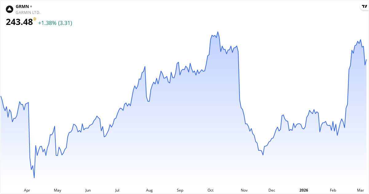 Garmin publicerar nästa rapport den 06. maj 2026. Aktien handlas för närvarande till 243.48 $. Med ett P/E-tal på 27.9 kommer marknaden hålla utkik efter om intjäningen lever upp till förväntningarna.