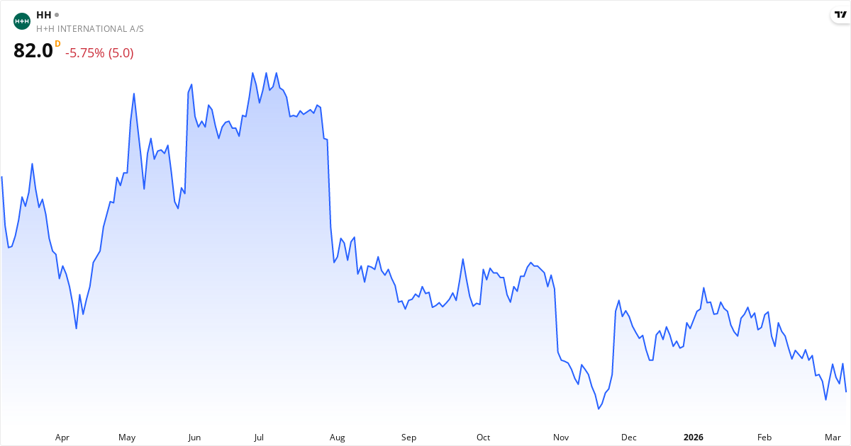 HH International publicerar nästa rapport den 12. maj 2026. Aktien handlas för närvarande till 82.00 Kr..