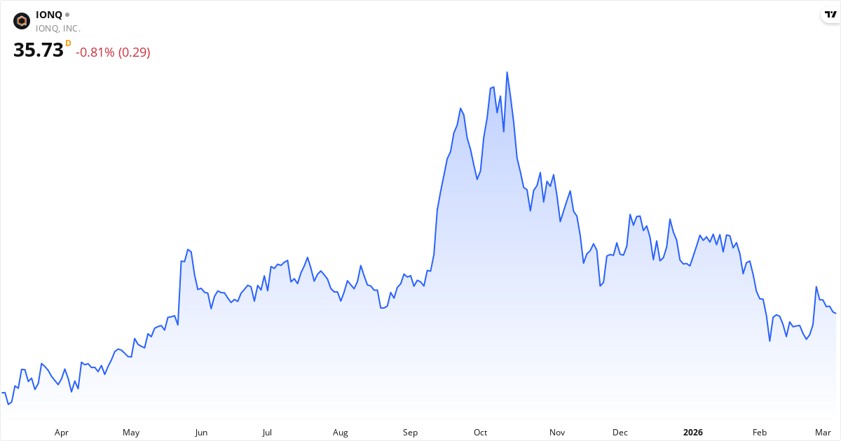 IonQ publicerar nästa rapport den 01. april 2026. Aktien handlas för närvarande till 35.73 $.