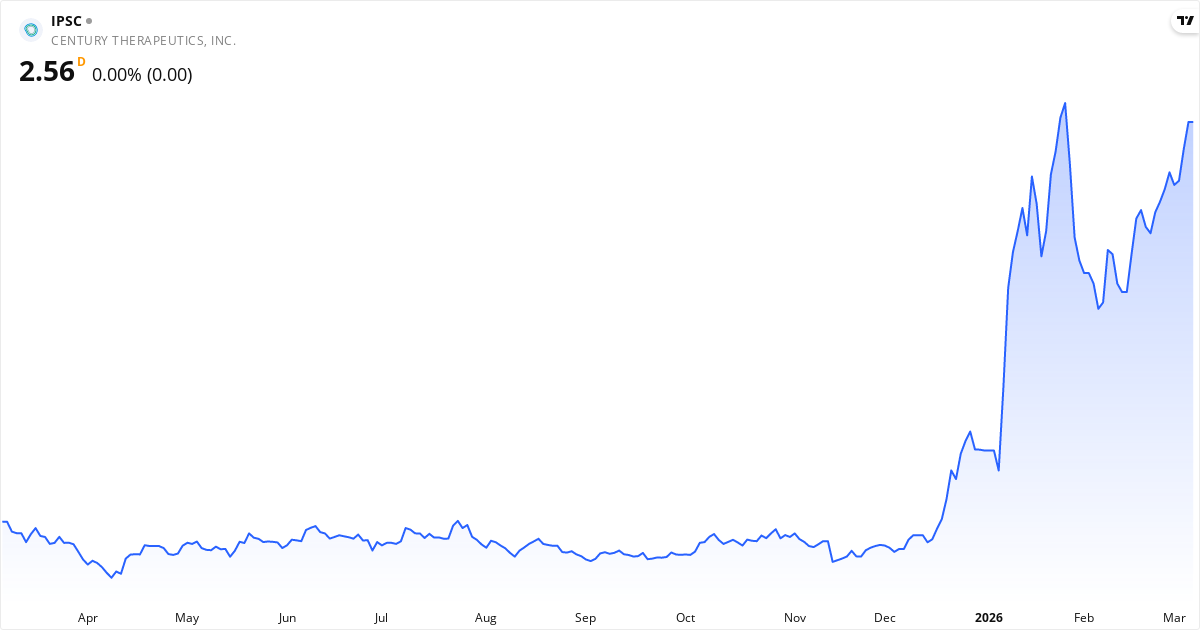 Century Therapeutics aktiekurs – Kursutveckling 2026. Uppdaterad 08. Mar 2026.