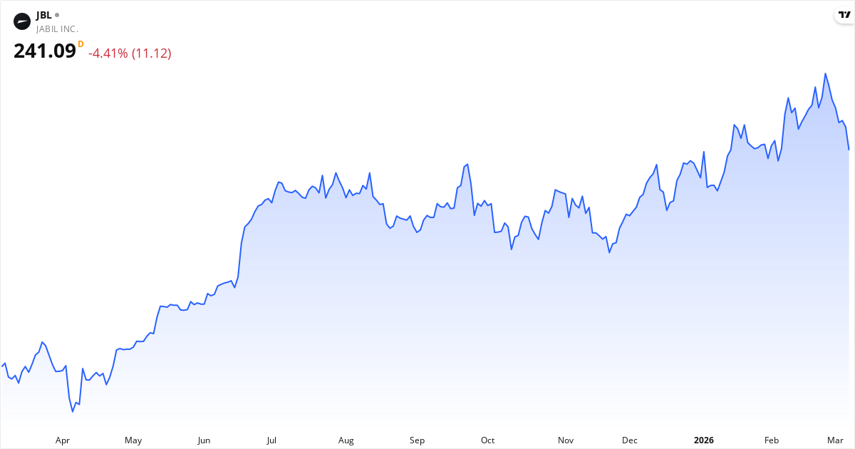 Jabil publicerar nästa rapport den 13. mars 2026. Aktien handlas för närvarande till 241.09 $. Med ett P/E-tal på 39.5 kommer marknaden hålla utkik efter om intjäningen lever upp till förväntningarna.