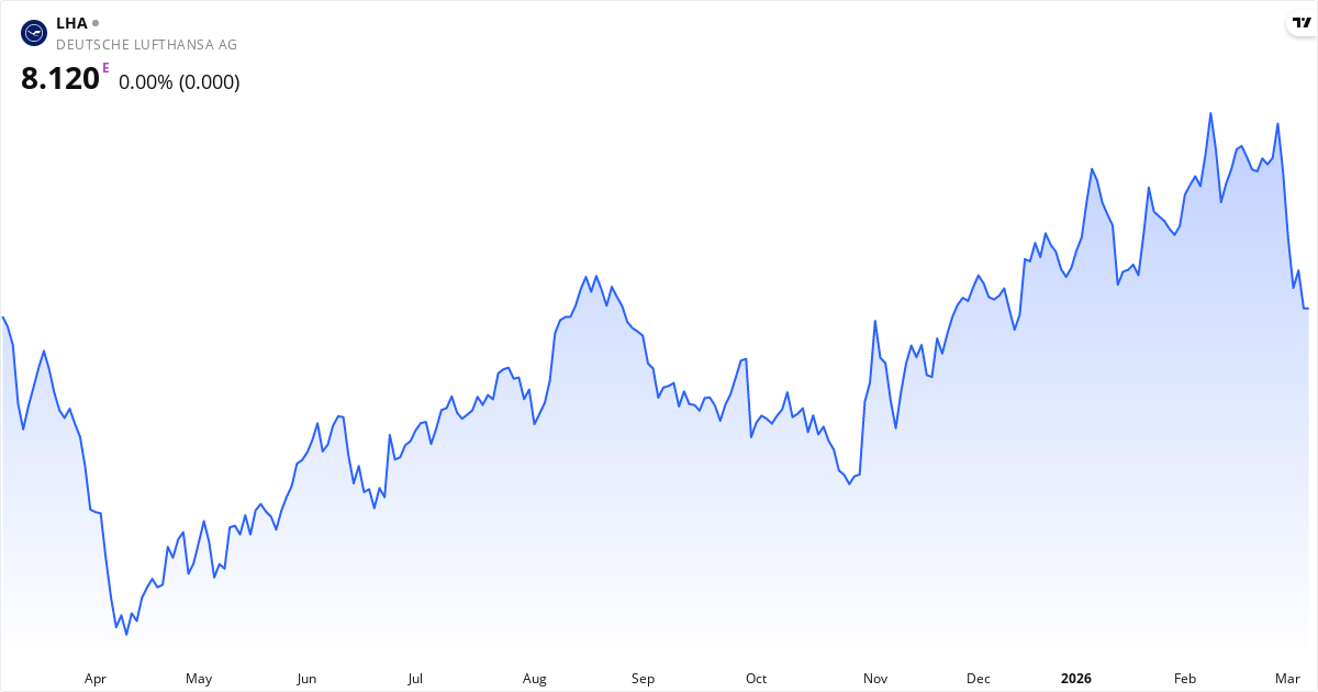 Deutsche Lufthansa (LHA.XETRA) riktkurs 2026: 9% upside + 3.7% utdelning