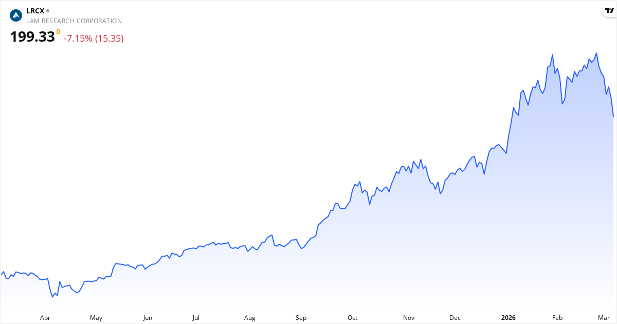 Lam Research publicerar nästa rapport den 22. april 2026. Aktien handlas för närvarande till 199.33 $. Med ett P/E-tal på 45.9 kommer marknaden hålla utkik efter om intjäningen lever upp till förväntningarna.