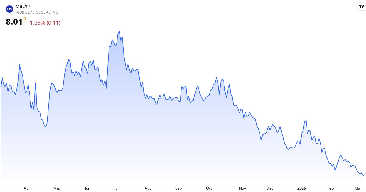 Mobileye Global aktiekurs – Kursutveckling 2026. Uppdaterad 08. Mar 2026.