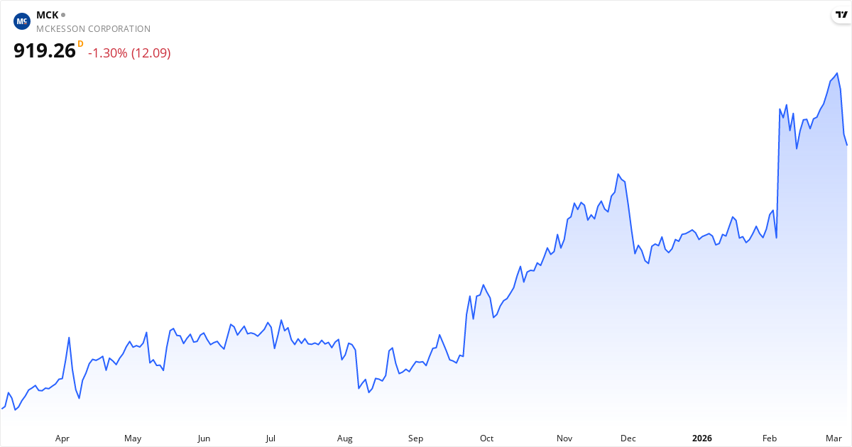 McKesson aktiekurs – Kursutveckling 2026. Uppdaterad 08. Mar 2026.