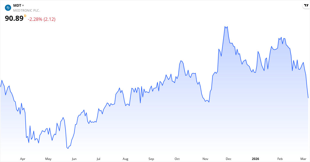 Medtronic aktiekurs – Kursutveckling 2026. Uppdaterad 08. Mar 2026.