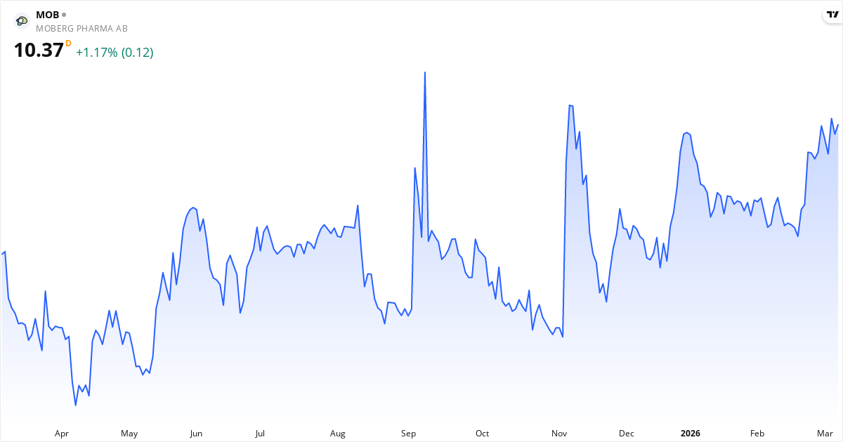 Moberg Pharma, eller mob.st, utvecklar och säljer medicinska produkter för hudsjukdomar. De bedriver verksamhet i Sverige, USA och internationellt. Deras fokus ligger särskilt på att utveckla nya behandlingar, och de har två stora projekt igång just nu. De testar MOB-015 i fas III för behandling av nagelsvamp. Dessutom tillverkar Moberg Pharma också BUPI, som är en sugtablett med smärtstillande effekt mot inflammation i munslemhinnan. Företaget grundades 2006 och har sitt huvudkontor i Bromma. De tjänar alltså primärt pengar på att utveckla och kommersialisera dessa specialiserade läkemedel. Läs om företagetNyckeltal for Moberg Pharma