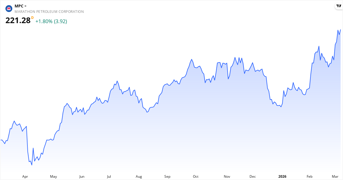Marathon Petroleum aktiekurs – Kursutveckling 2026. Uppdaterad 08. Mar 2026.