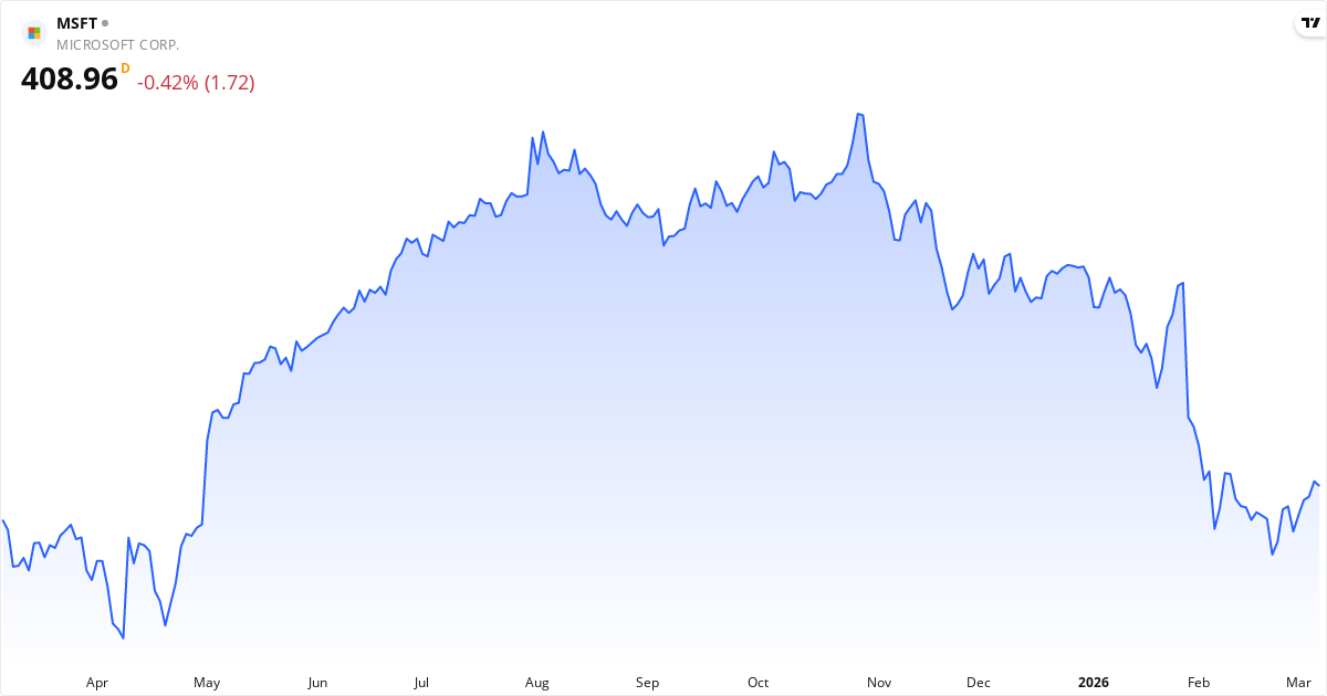 Microsoft publicerar nästa rapport den 28. april 2026. Aktien handlas för närvarande till 408.96 $. Med ett P/E-tal på 25.4 kommer marknaden hålla utkik efter om intjäningen lever upp till förväntningarna.