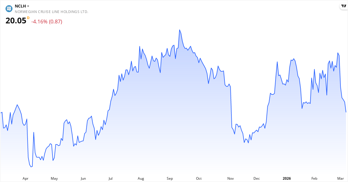 Norwegian Cruise Line aktiekurs – Kursutveckling 2026. Uppdaterad 08. Mar 2026.