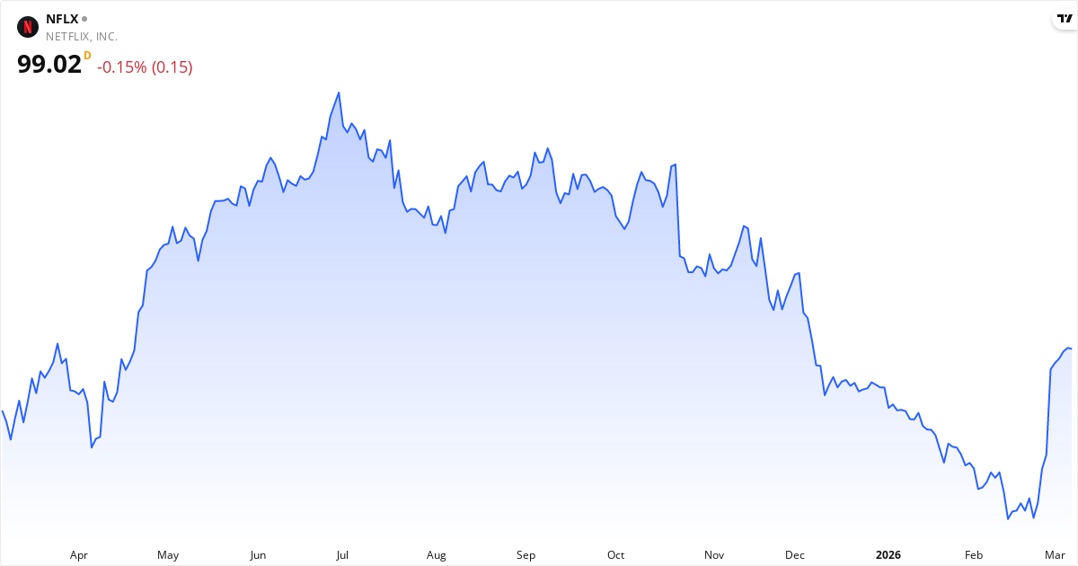 Netflix aktiekurs – Kursutveckling 2026. Uppdaterad 08. Mar 2026.