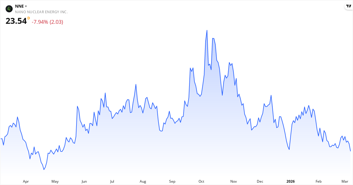 Nano Nuclear Energy aktiekurs – Kursutveckling 2026. Uppdaterad 08. Mar 2026.