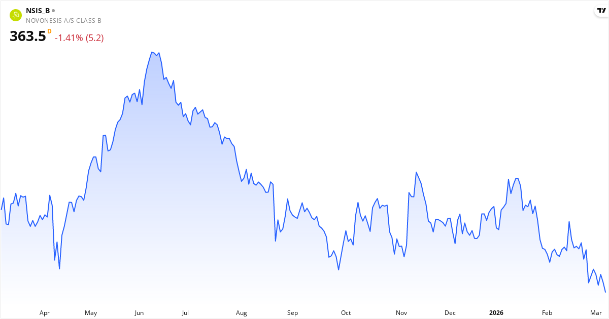 Novonesis publicerar nästa rapport den 20. augusti 2026. Aktien handlas för närvarande till 363.50 Kr.. Med ett P/E-tal på 39.5 kommer marknaden hålla utkik efter om intjäningen lever upp till förväntningarna.