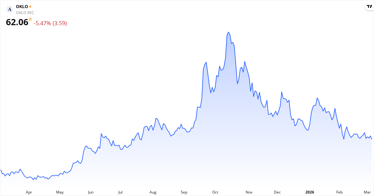 Oklo aktiekurs – Kursutveckling 2026. Uppdaterad 08. Mar 2026.