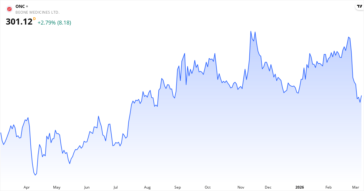 BeiGene aktiekurs – Kursutveckling 2026. Uppdaterad 08. Mar 2026.