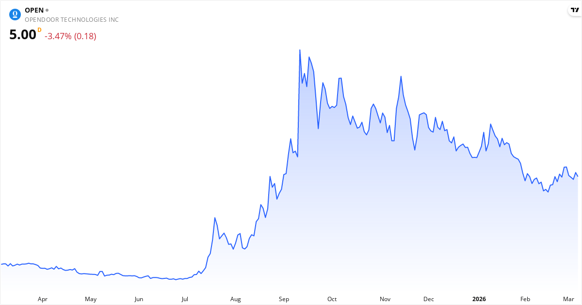 Opendoor Technologies aktiekurs – Kursutveckling 2026. Uppdaterad 08. Mar 2026.