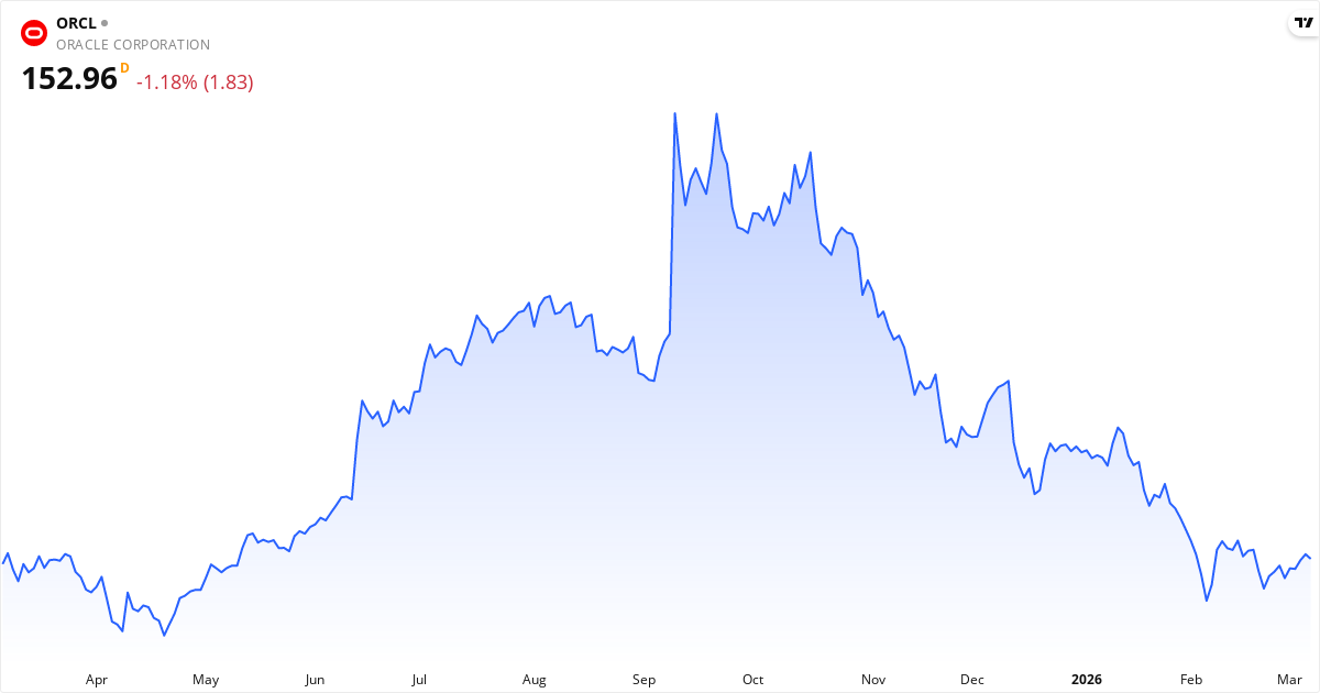Oracle publicerar nästa rapport den 09. mars 2026. Aktien handlas för närvarande till 152.96 $. Med ett P/E-tal på 29.1 kommer marknaden hålla utkik efter om intjäningen lever upp till förväntningarna.