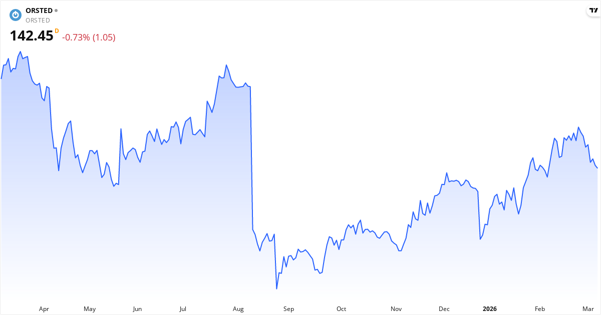 Ørsted aktiekurs – Kursutveckling 2026. Uppdaterad 08. Mar 2026.