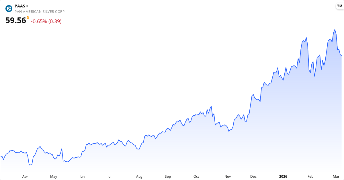 Pan American Silver Corp., eller paas.us, driver gruvor och förädlar silver, guld, zink, bly och koppar. De tjänar alltså pengar på hela processen, från prospektering till raffinering av metallerna. Pan American Silver har gruvor i flera länder – bland annat Kanada, Mexiko och Peru. De driver kända gruvor som La Colorada och Dolores. Företaget grundades 1979 och har sitt huvudkontor i Vancouver. De äger intressen i ett flertal gruvor, till exempel Shahuindo och Timmins West, vilket säkerställer deras råvaruförsörjning. Pan American Silver Corp. fokuserar på metaller i Nord- och Sydamerika. Läs om företagetNyckeltal for Pan American Silver