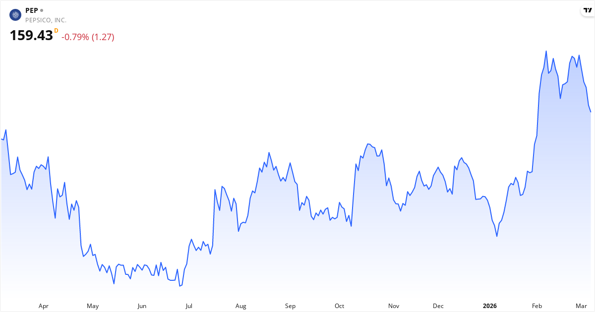 Pepsi publicerar nästa rapport den 28. april 2026. Aktien handlas för närvarande till 159.43 $. Med ett P/E-tal på 27.3 kommer marknaden hålla utkik efter om intjäningen lever upp till förväntningarna.