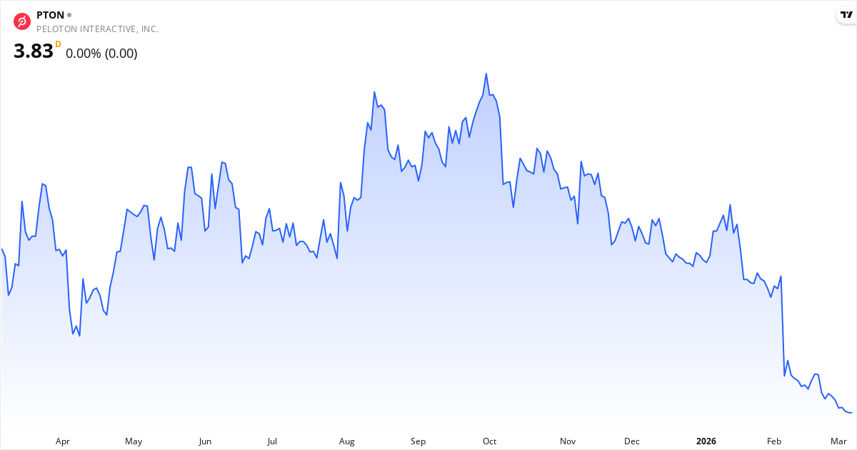 Peloton Interactive aktiekurs – Kursutveckling 2026. Uppdaterad 08. Mar 2026.