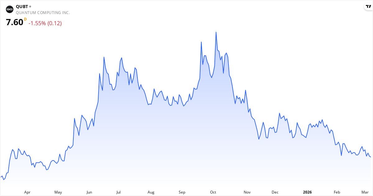 Quantum Computing publicerar nästa rapport den 01. april 2026. Aktien handlas för närvarande till 7.60 $.