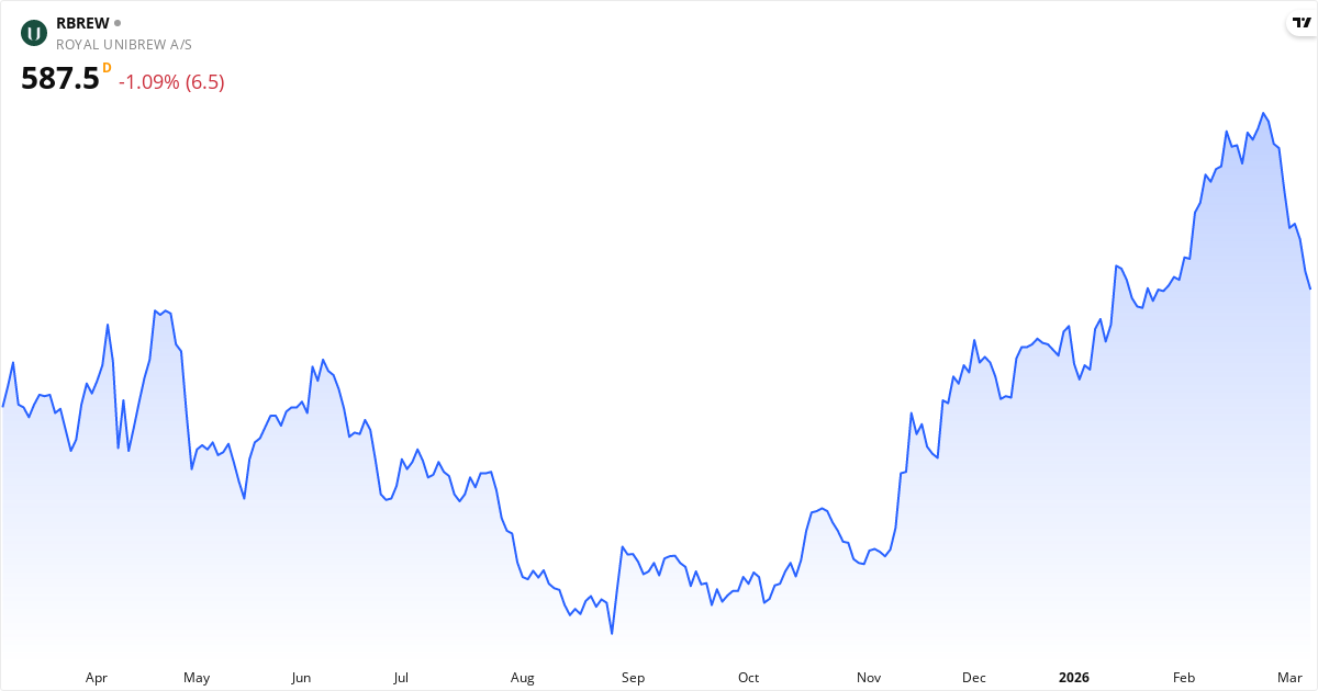 Royal Unibrew aktiekurs – Kursutveckling 2026. Uppdaterad 08. Mar 2026.