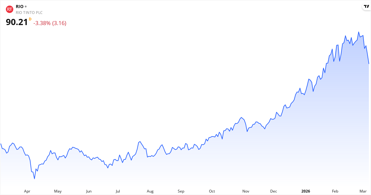 Rio Tinto är ett gruvföretag som tjänar pengar på att gräva upp mineraler och förädla dem. De driver gruvor, raffinaderier och smältverk över hela världen. Rio Tinto är känt för att leverera ett brett utbud av råvaror. Bland deras viktigaste produkter finns aluminium, koppar, järnmalm och litium, men de handlar också med diamanter och borater. De äger och driver både dagbrott och underjordiska anläggningar. Företaget grundades redan 1873. Rio Tinto har sitt huvudkontor i London och deras verksamhet sträcker sig globalt. De har en stor del av sin verksamhet i att leverera de grundläggande material som industrin behöver. Läs om företagetNyckeltal for Rio Tinto