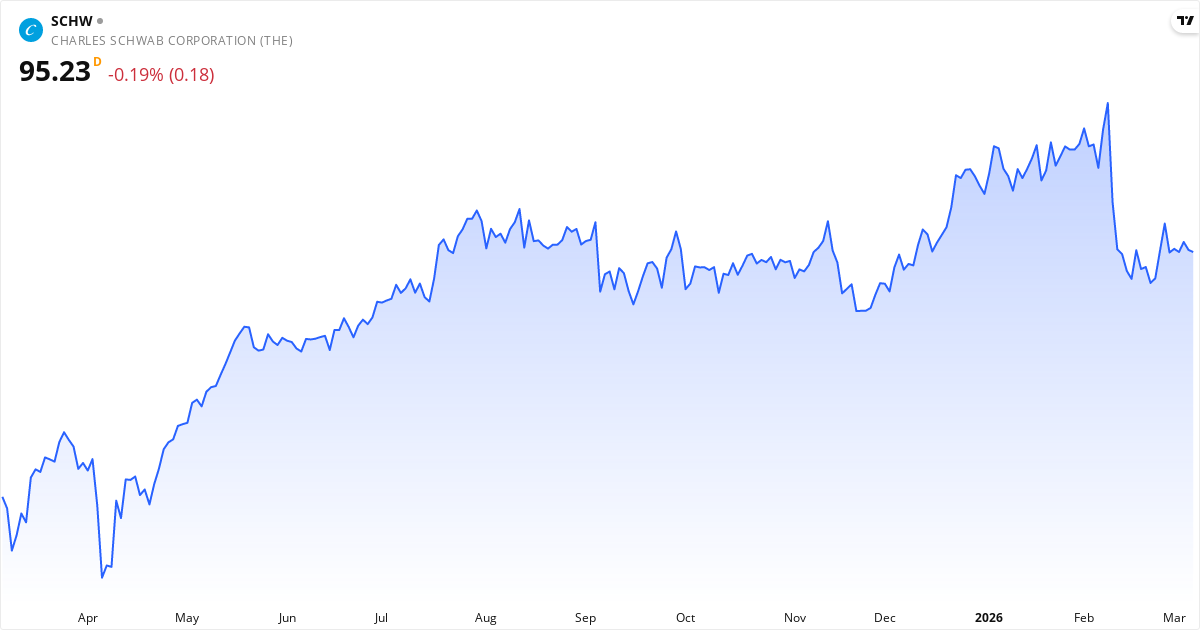 The Charles Schw publicerar nästa rapport den 16. april 2026. Aktien handlas för närvarande till 95.23 $. Med ett P/E-tal på 20.7 kommer marknaden hålla utkik efter om intjäningen lever upp till förväntningarna.