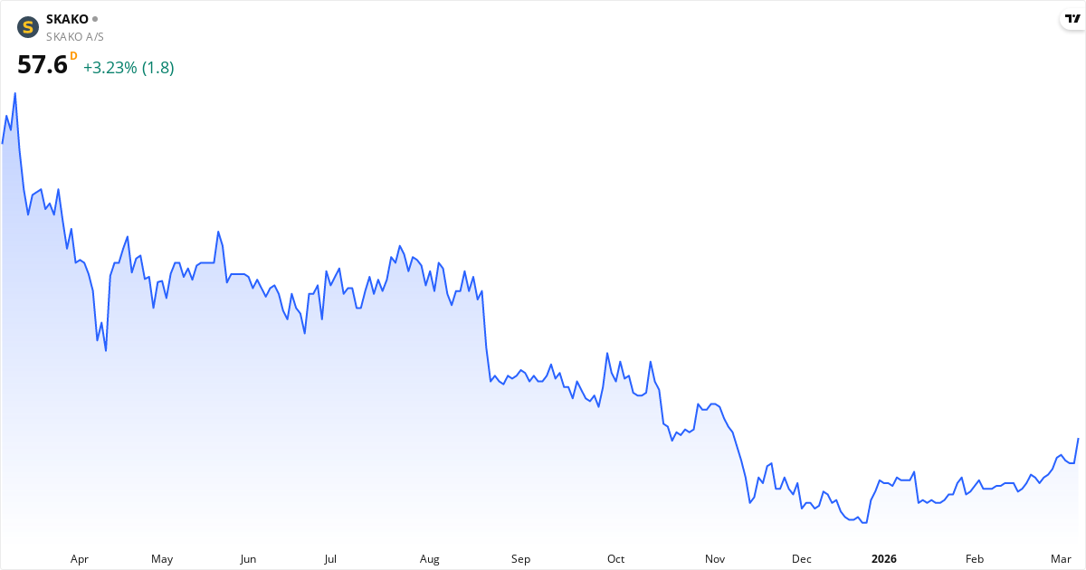 SKAKO teknisk analys – Candlestick-diagram med RSI och MACD. Uppdaterad 08. Mar 2026.