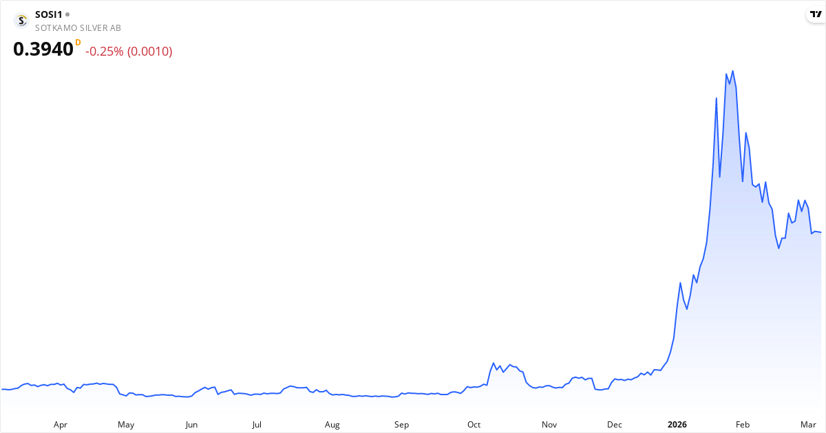 Sotkamo Silver driver primært minedrift og efterforsker mineraler. De tjener penge ved at udvikle og udnytte de mineralforekomster, de finder i Kainuu-regionen i Finland. Deres hovedfokus er sølv, men de leder også efter guld, bly og zink. Sotkamo Silver er især kendt for deres sølvmineprojekt, som ligger tæt på Sotkamo i Finland. Selvom minerne ligger i Finland, blev Sotkamo Silver grundlagt helt tilbage i 1983 og har hovedkontor i Stockholm, Sverige. De startede altså for over 40 år siden og har siden da bygget en ret stor forretning op omkring metaller. Läs om företagetNyckeltal for Sotkamo Silver