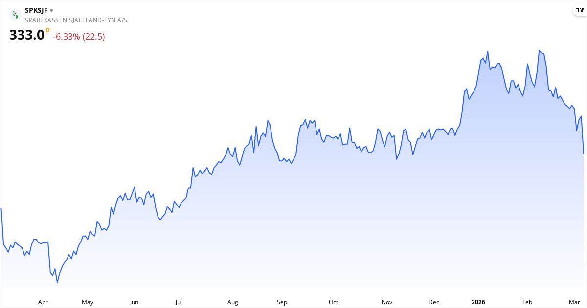 Sparekassen Sjælland-Fyn aktiekurs – Kursutveckling 2026. Uppdaterad 08. Mar 2026.